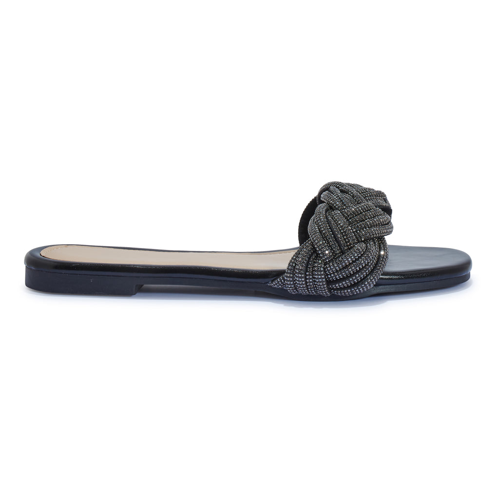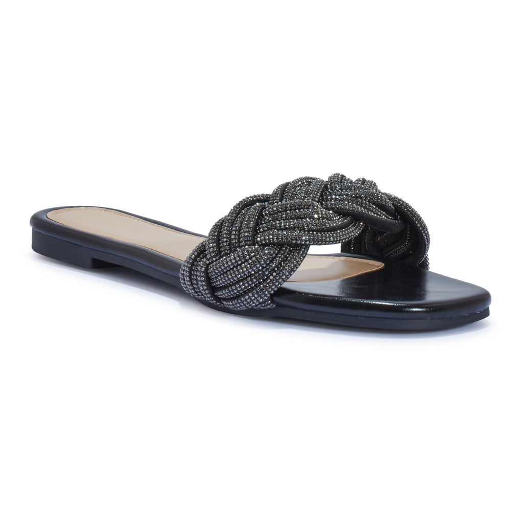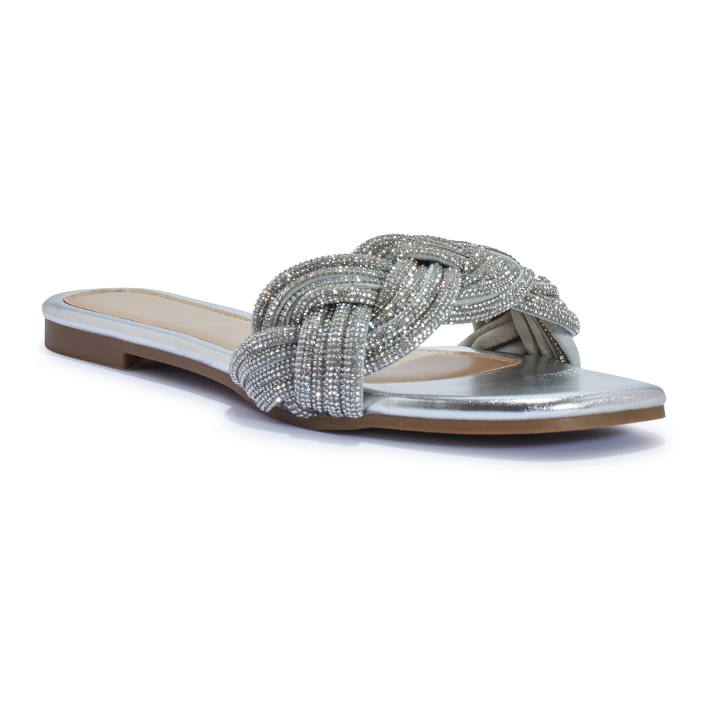 ROBIN2 DIAMANTE WEAVE SLIP ON FLAT SANDAL