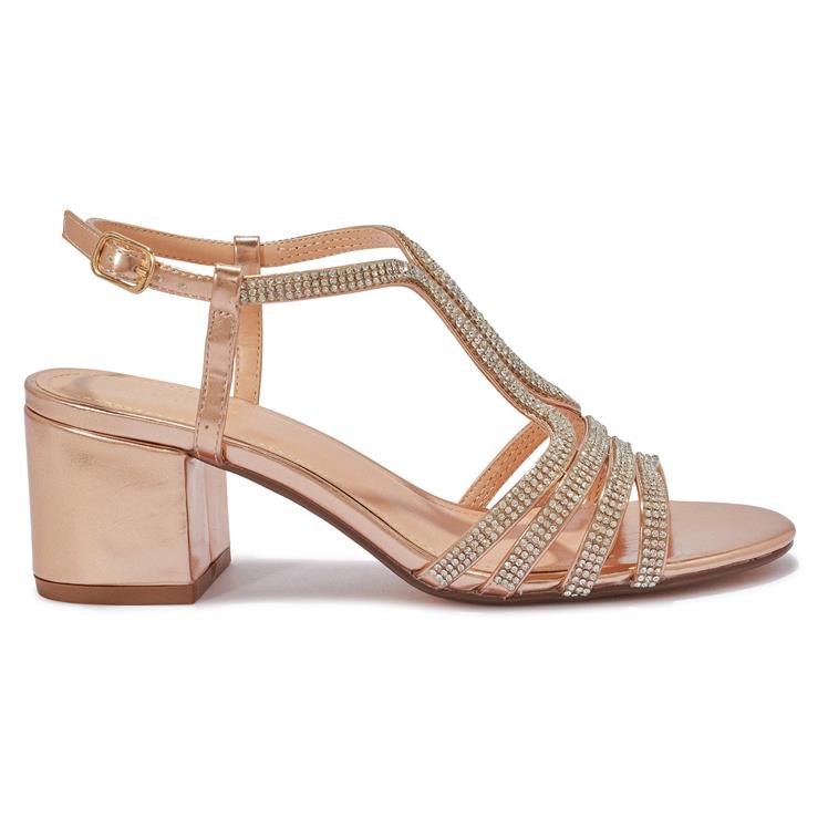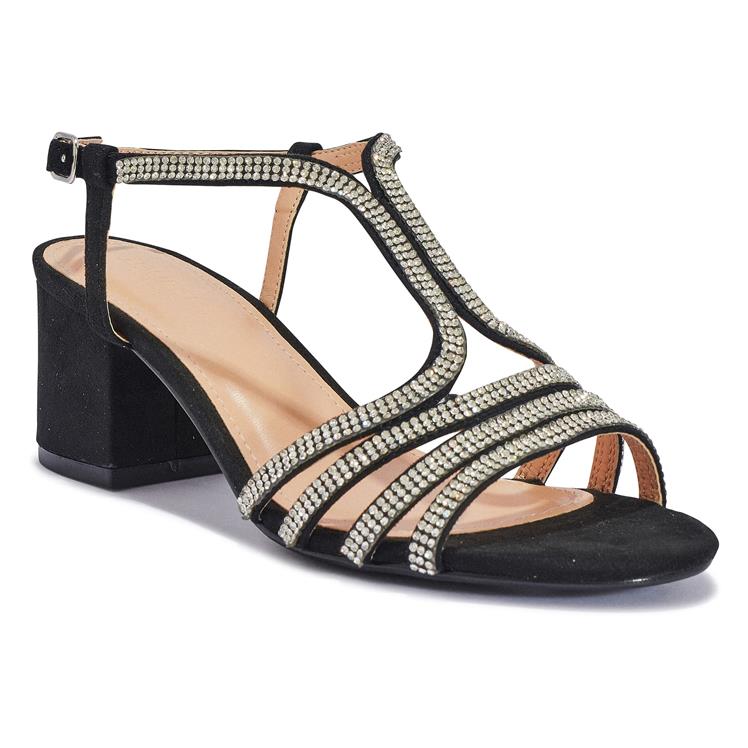 Women's Diamante Strap Block Heel Open Toe Sandal. Available in a size pack A (Please see size guide for details).