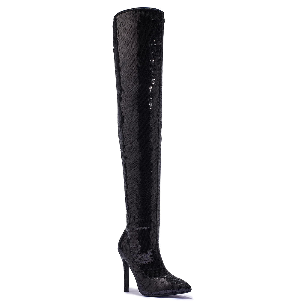 AAK201 SEQUIN STILETTO OVER THE KNEE BOOT