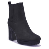 Women's High Block Heel Platform Ankle Boot. Available in a size pack A (Please see size guide for details).