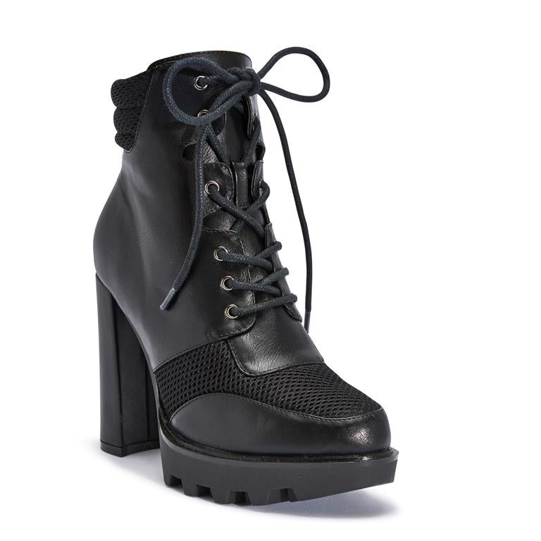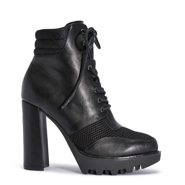 Women's High Block Heel Lace Up Ankle Boot. Available in a size pack A (Please see size guide for details).