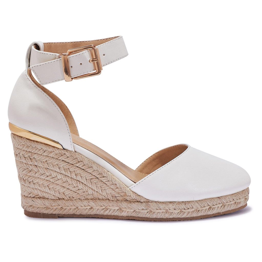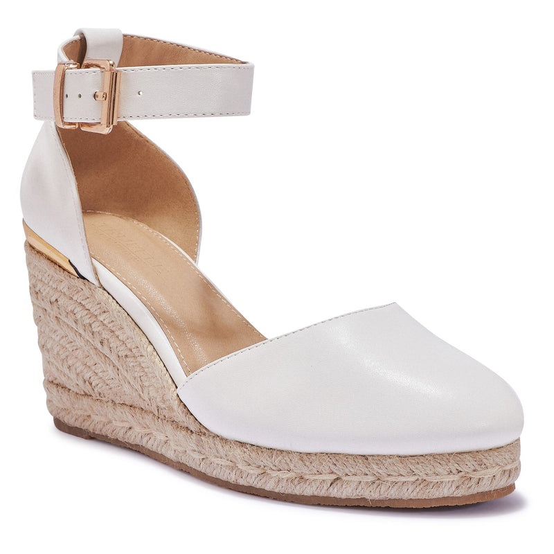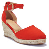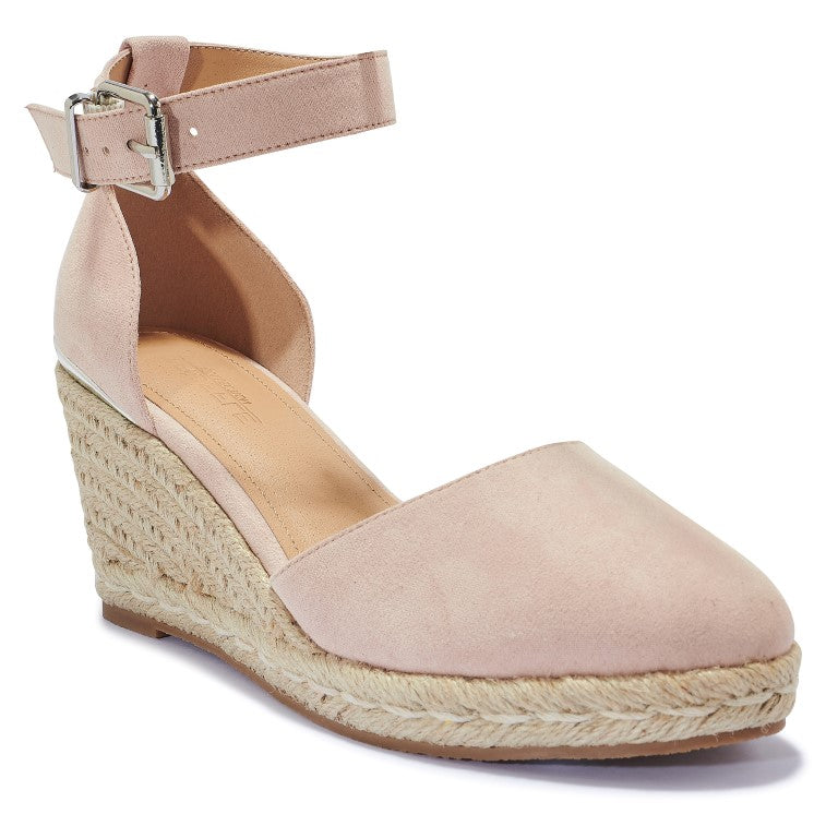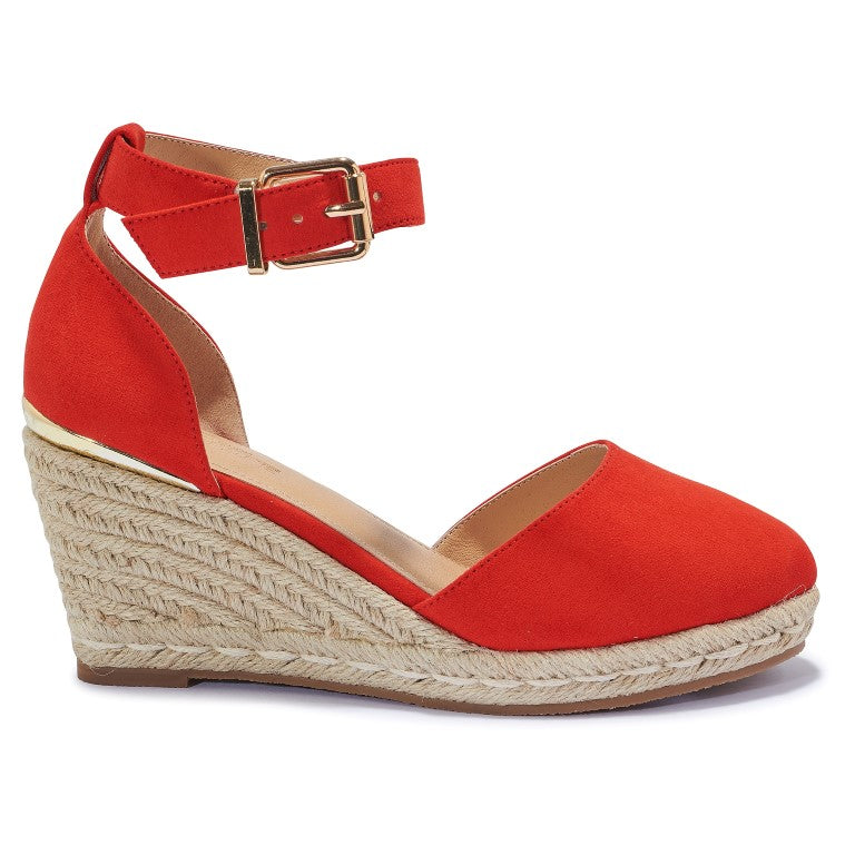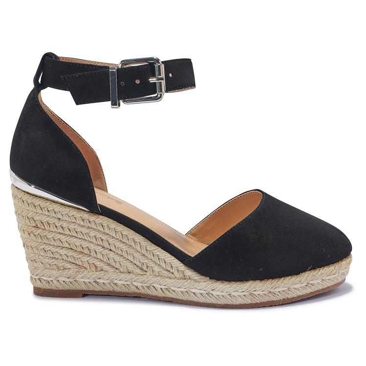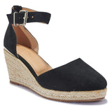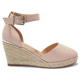 Womens hessian low platform ankle strap high heel wedge sandals with microfiber upper. Available in a size pack A (Please see size guide for details).