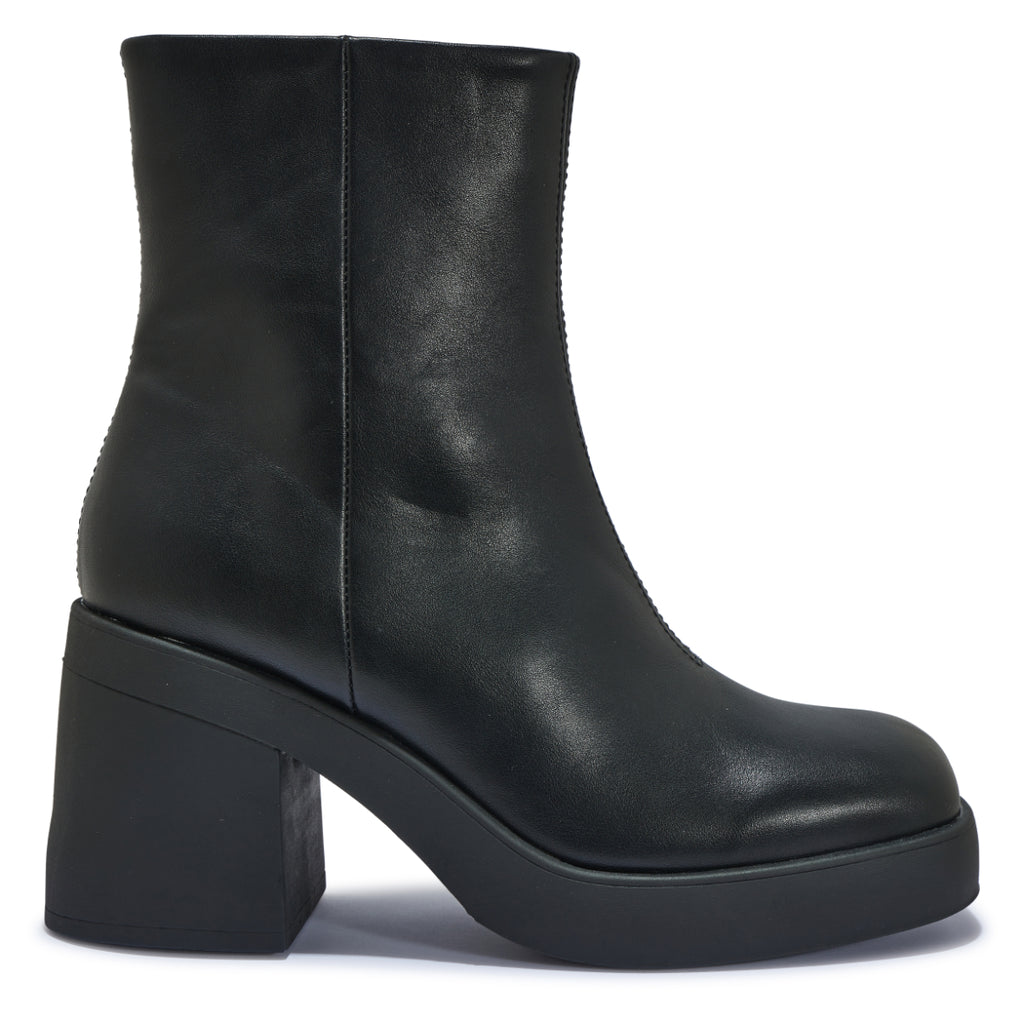 Classic Block Heel Ankle Boot - Flare Block Heel - Rounded Toe- Chunky Heel - Available in Black PU