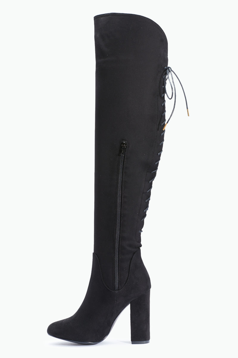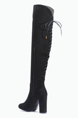 Block Heel Over The knee Lace Up Boots Suede