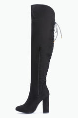 Block Heel Over The knee Lace Up Boots