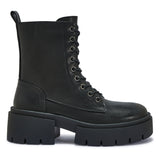 Chunky Cleated Platform Lace Up Ankle Boot - Cleated Platform Heel - Rounded Toe - Lace Up - Inside Zip For Easy Fit- Available in Black PU