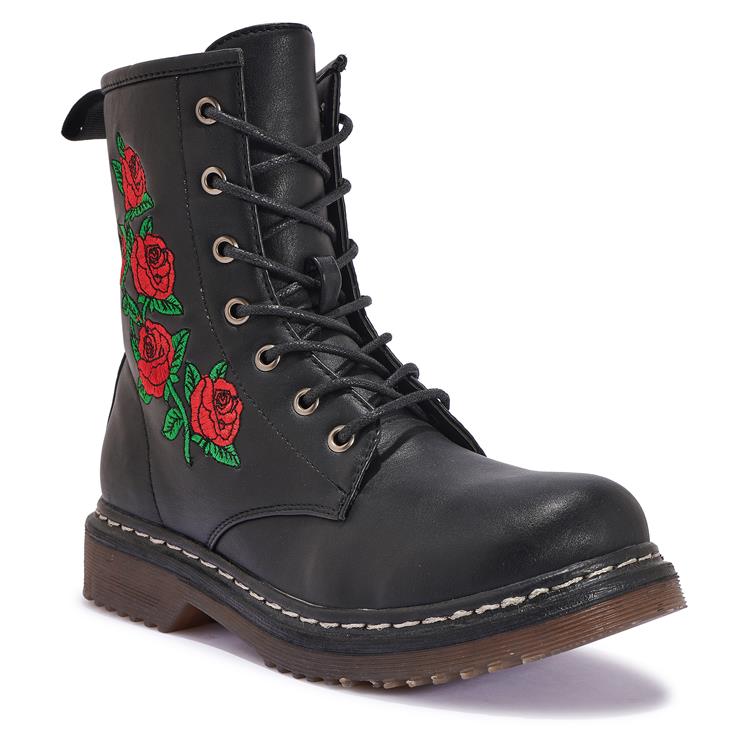 BUK83 FLOWER EMBROIDERY ANKLE LACE UP BOOT