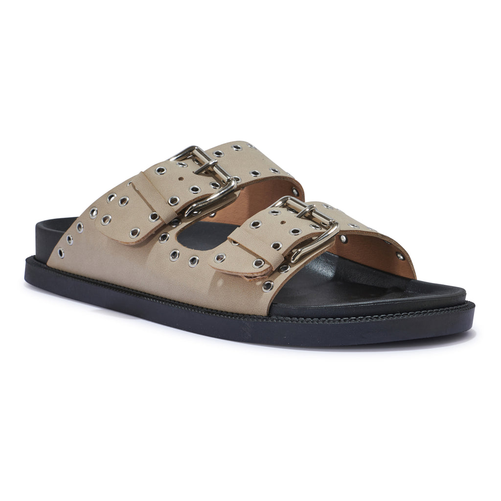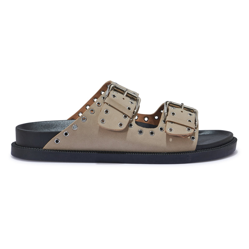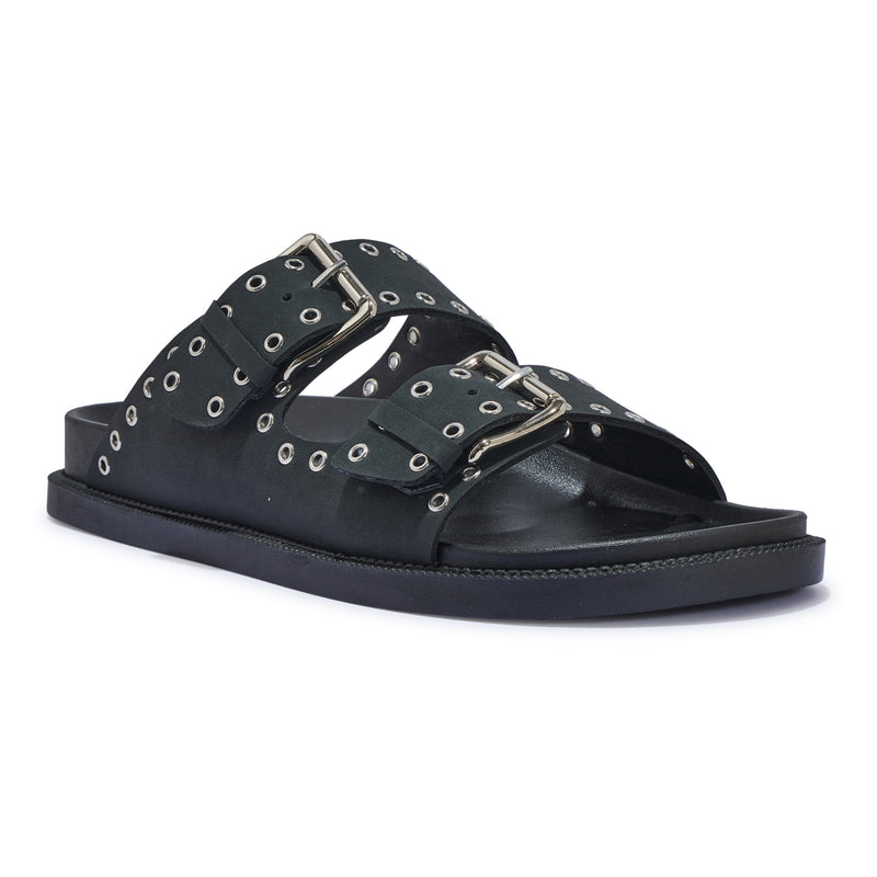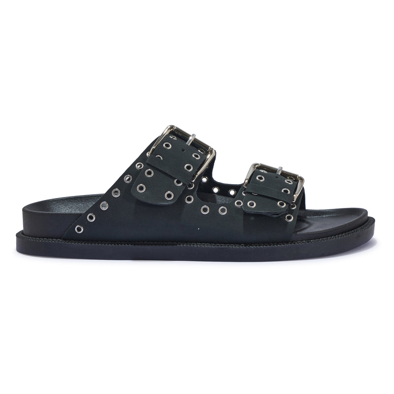 KIDMAN18 EYELET DETAIL BUCKLE SLIP ON FOOTBED MULES