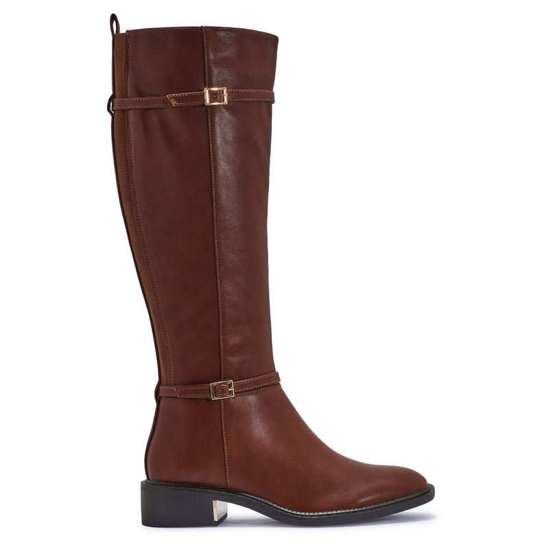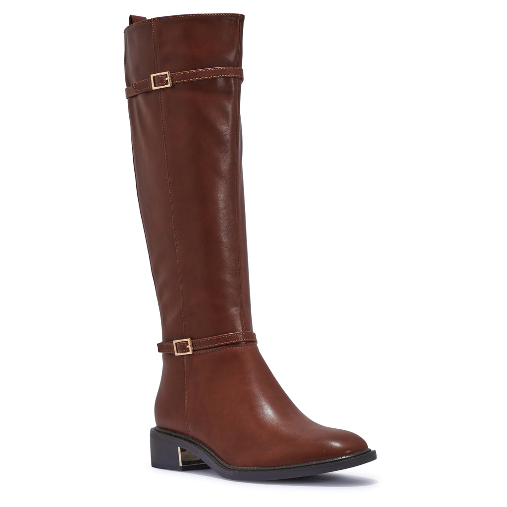 LATTE3 FAUX LEATHER KNEE HIGH BOOTS WITH GOLD BUCKLE