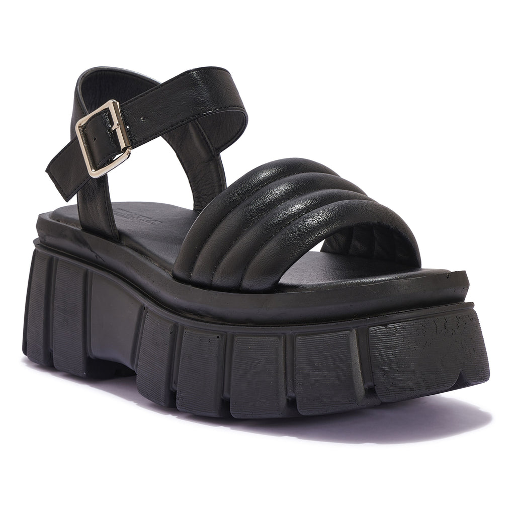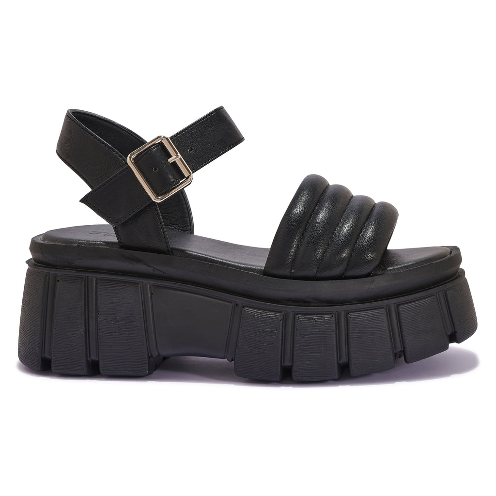 - Padded Strap Buckle Ankle Detail Sandal - Cleated platform heel - Adjustable buckle ankle strap - Padded upper adds cushioning and comfort - Available in Black