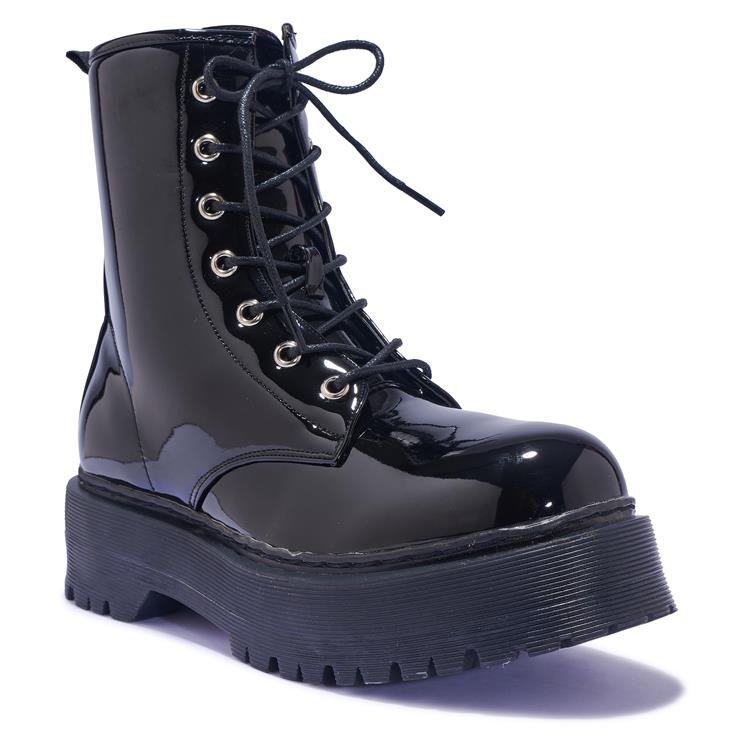 PU CHUNKY LACE UP BOOT. COMES WITH INSIDE ZIP FOR EASY FITTING