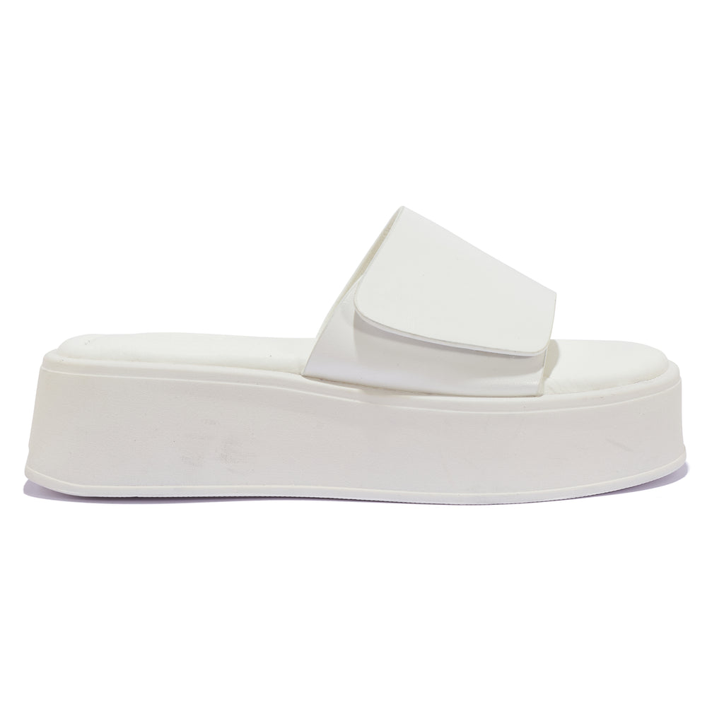 - Chunky Platform PU Slider - Available in Black PU, White PU and Lemon PU.Chunky flatform heel that adds height but keeps them comfortable.