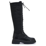 Introducing PERTH104 Knee-High Lace-Up Knitted Sock Boots - the perfect fusion of style, warmth, and contemporary charm. These boots are designed to captivate, combining the cozy comfort of knitted sock-like uppers with a fashionable knee-high silhouette. With their snug fit, lace-up detailing, and trendy appeal, they offer both comfort and an on-trend edge, making them an excellent choice for various occasions. Whether you're strolling through city streets, embracing a casual day out, or aiming to make a stylish impression, PERTH104 boots promise to elevate your style with ease and coziness. Step into these knitted wonders and step out with confidence, knowing you're making a fashion statement that's as comfortable as it is chic.
