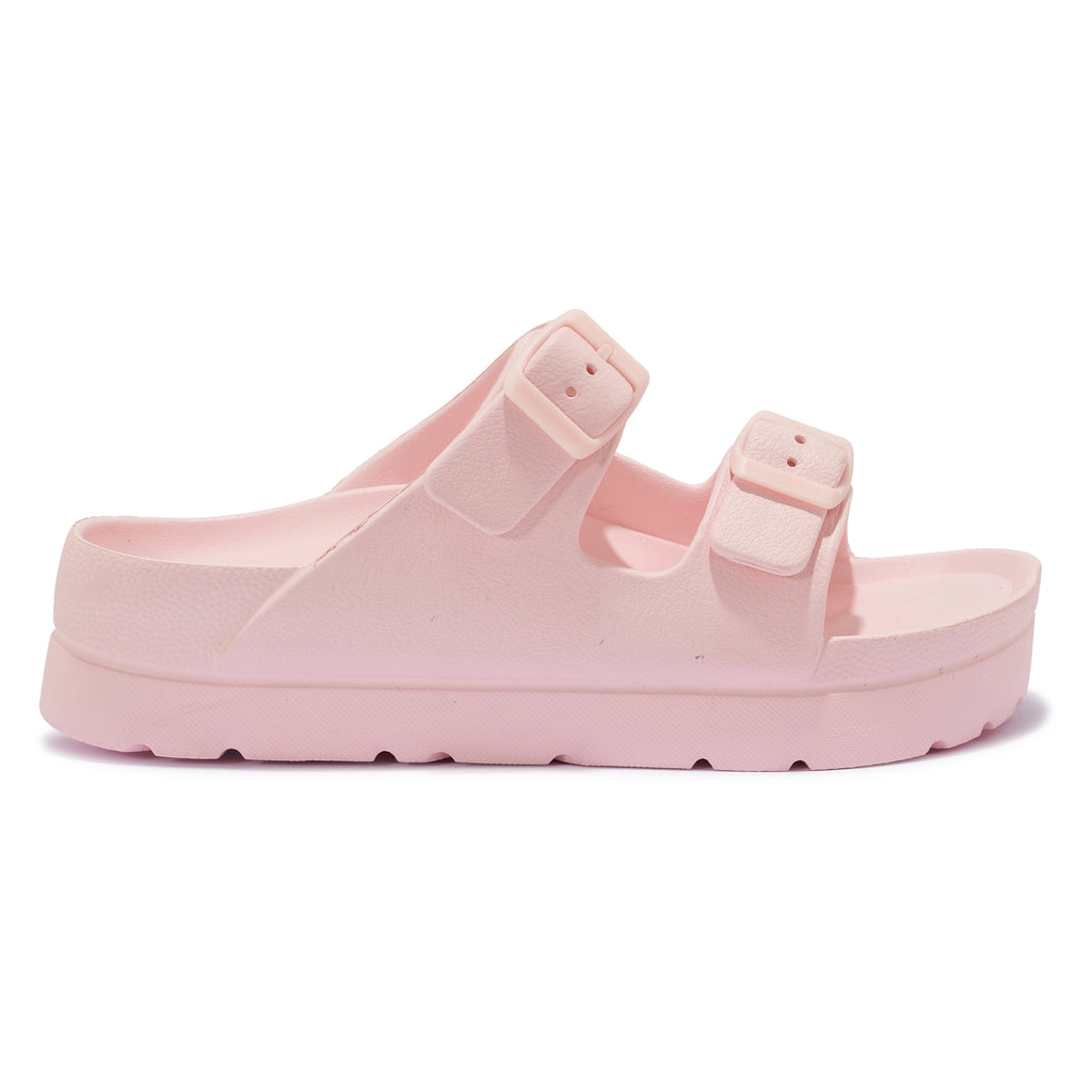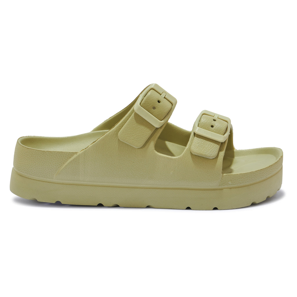- Double Buckle Strap TPR Sandal - Adjustable buckle straps - Molded Foot Bed - Slight cleated sole - Chunky double sole.