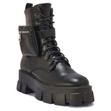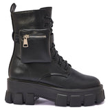 PU Chunky Cleated Pouch Ankle Boot. Inside zip for easy Fitting. Removable Pouch . PU upper material