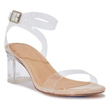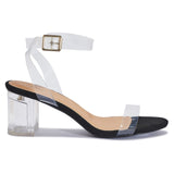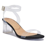 Women's Perspex Clear Mid-Block Heel Strappy Sandal. Available in a size pack A (Please see size guide for details).