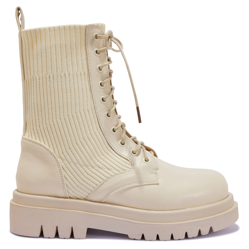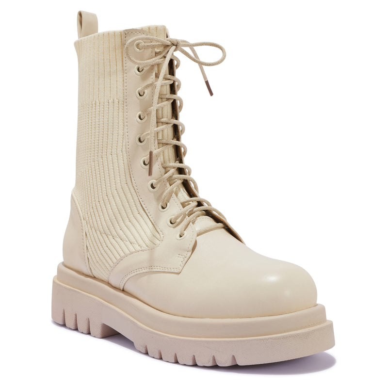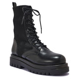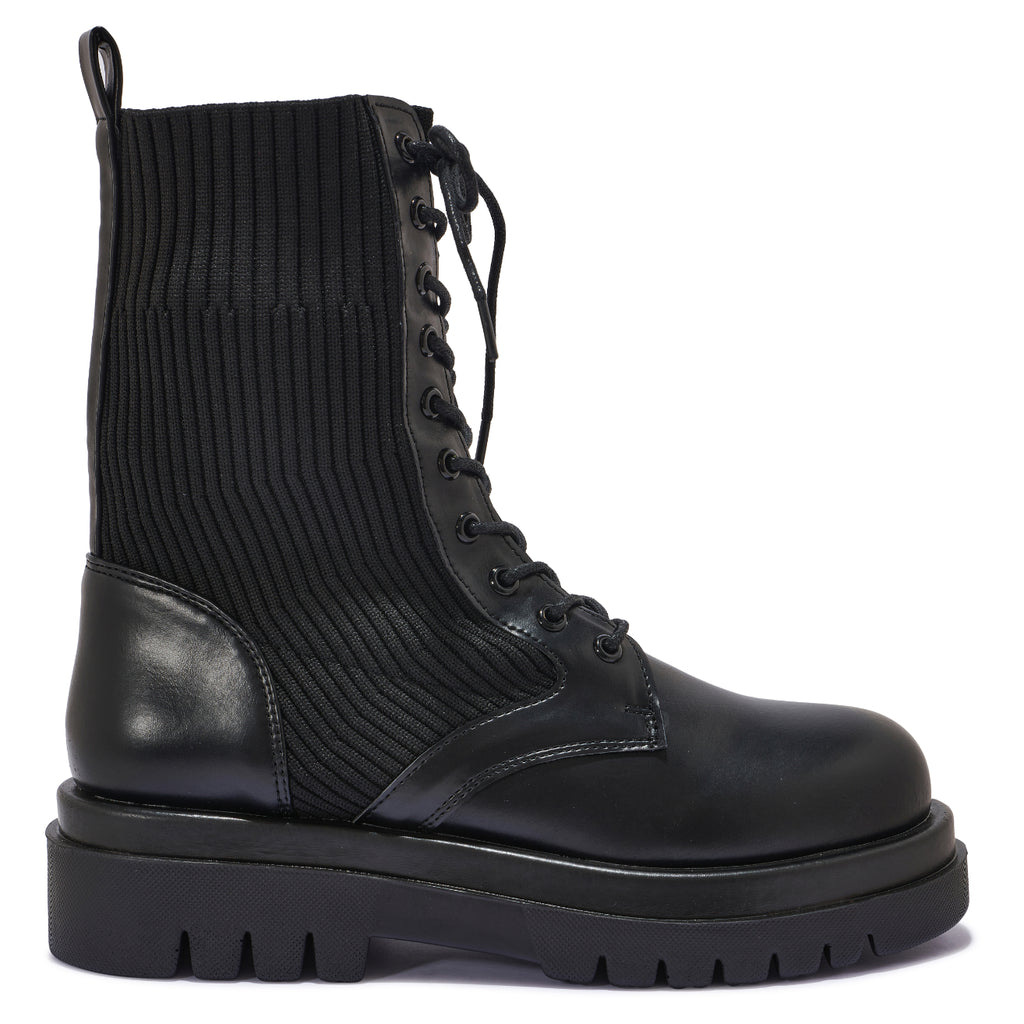 Double sole knitted lace up ankle boot Upper - PU / Knitted fabric Outsole - TPR