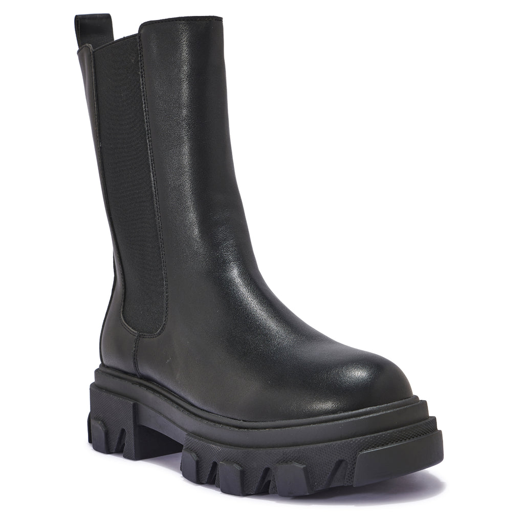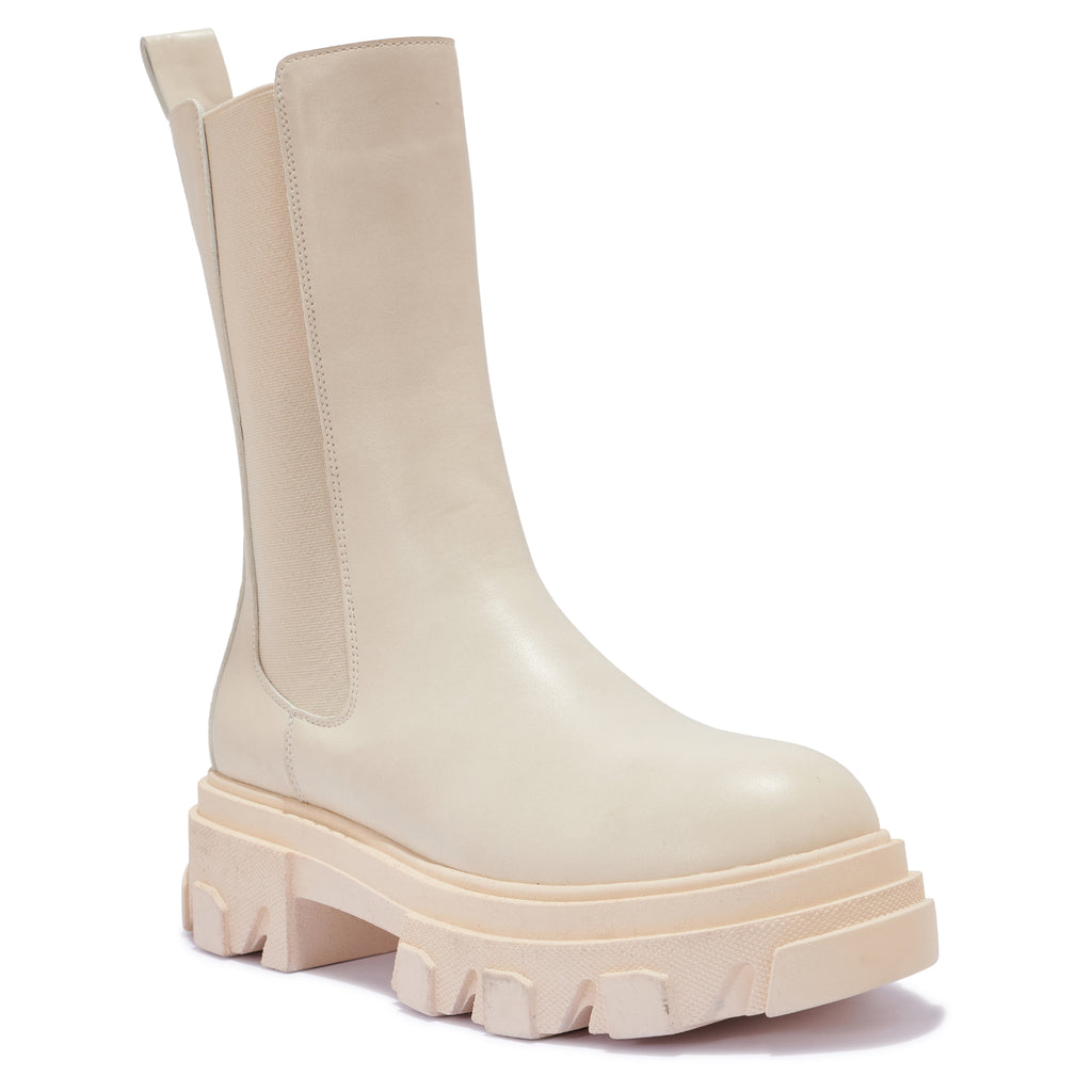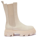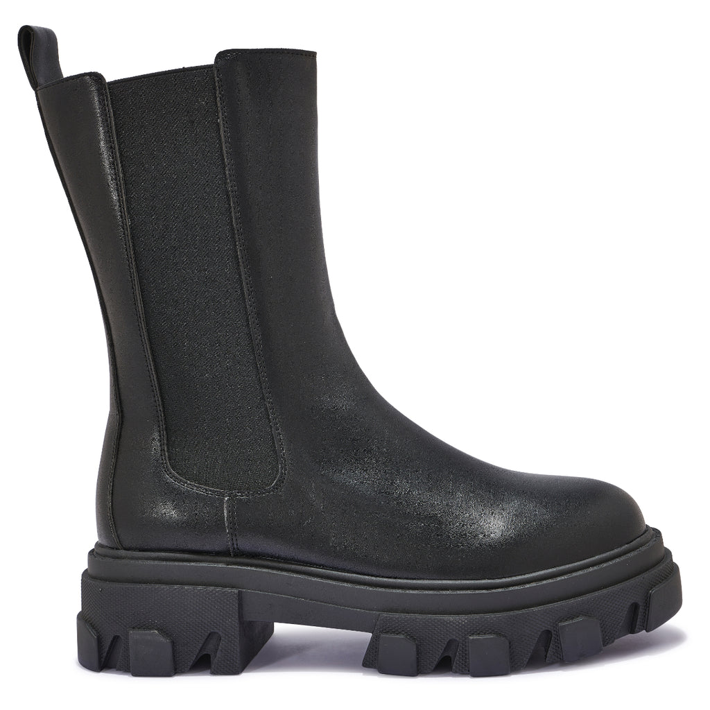 Cleated Double Sole Elastic Gusset Boot - Rounded Toe - Cleated Double Sole - Stretch Panel - Available in Black and Putty PU