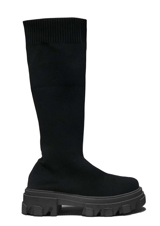 Cleated Double Sole Knee High Ribbed Knit Sock Boot - Cleated Double Sole - Rounded Toe- Pull On Ribbed Knit Sock Boot Upper - Available in Black and Cream Knit